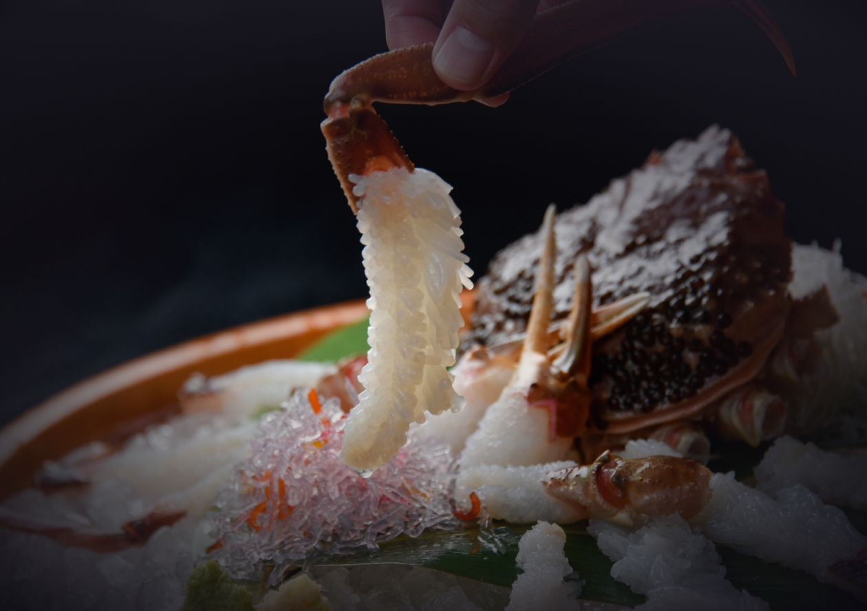 白イカ、松葉ガニ、とらふぐ、赤かれい、アジ、イシダイなど、鳥取の海が育んだ旬の鮮魚を究極鮮度でお楽しみいただけるいけす料理の数々。